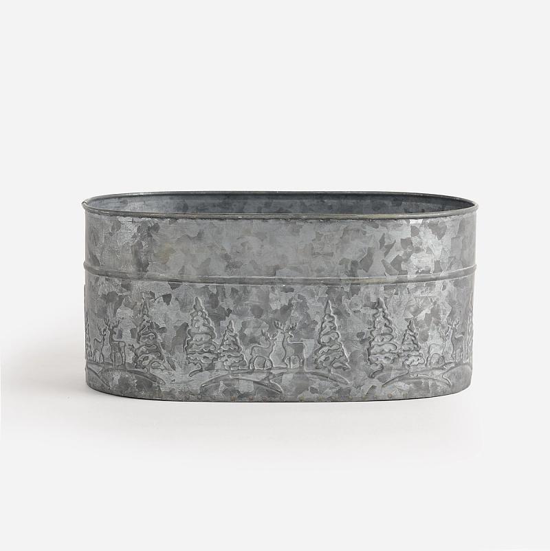 Bring timeless holiday charm to your home with the Advent Oval Planter, crafted from zinc with a beautifully aged vintage finish. Each planter features a delightful hand-pressed Christmas scene, adding a warm and nostalgic touch to your seasonal décor. Available in 3 sizes.