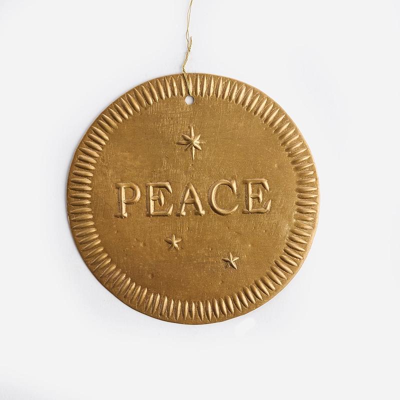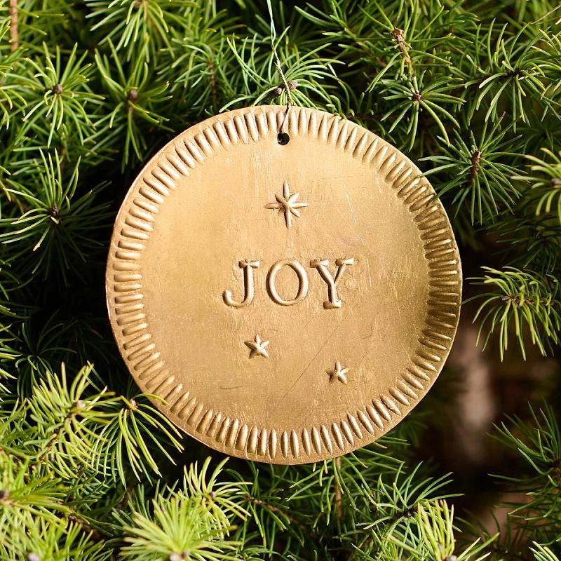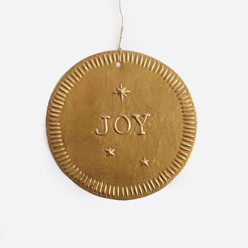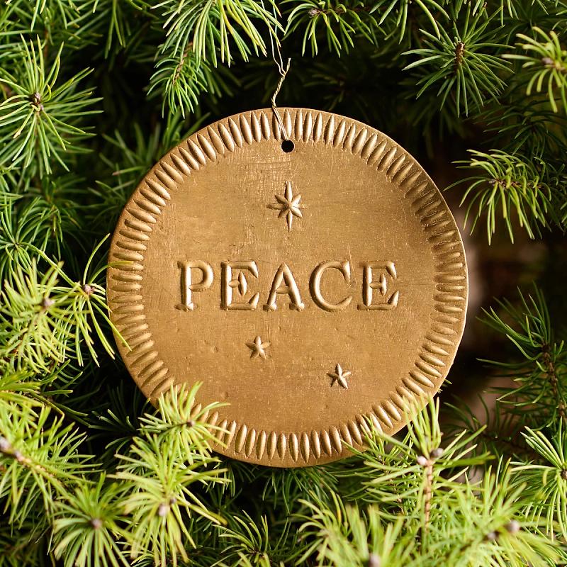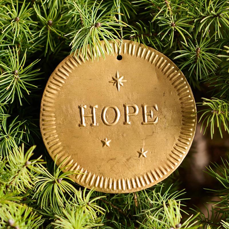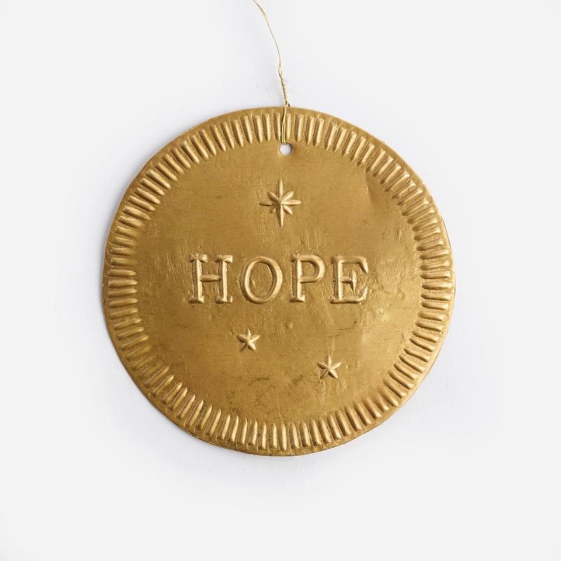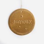 The Antiquity Basilica Set features six hand-pressed solid brass discs, each hand-rubbed to create a warm, aged patina. Suspended on fine brass wire, the disks display a combination of six French and English words, adding a charming, international touch to your holiday décor. Perfect for hanging on a Christmas tree or as a beautiful finishing detail on gift wrapping, this set is modelled on a recent find from the Paris flea market, bringing authentic old-world elegance to your festive celebrations.