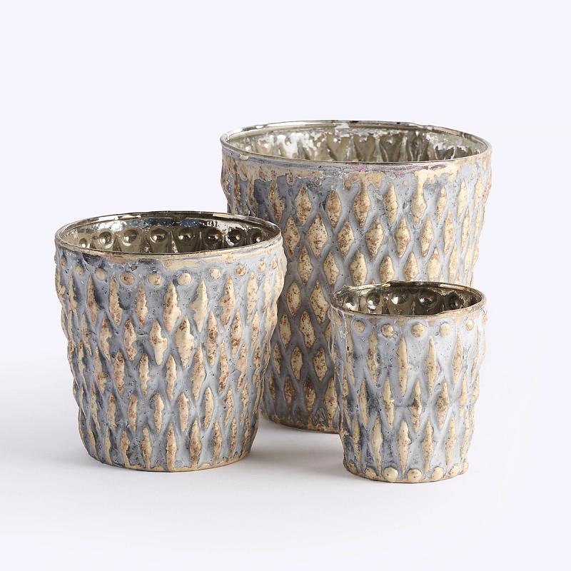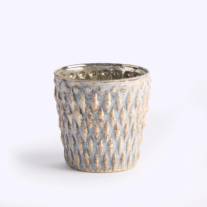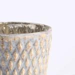 Elegant and sculptural, the Bach range features a refined conical shape embossed with a timeless diamond pattern. Each piece is handcrafted using traditional mercury silvering techniques, resulting in a softly weathered finish and authentic aged patina. With subtle variations that make every votive unique, the Bach collection radiates a warm, inviting glow, adding sophistication and charm to any interior. Combine with candle votives or flameless battery tea lights (not included). Available in three sizes.