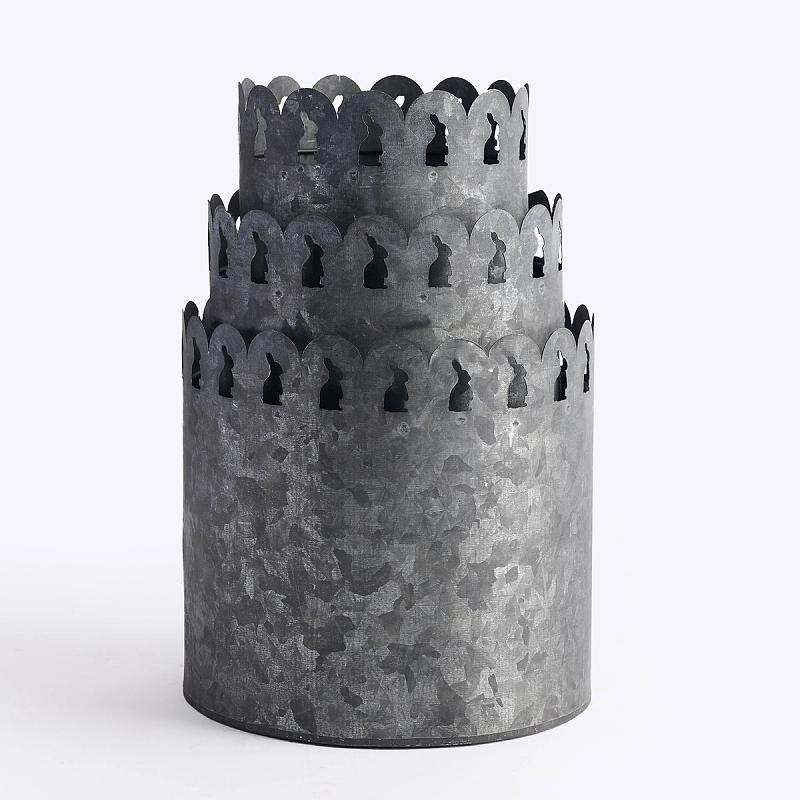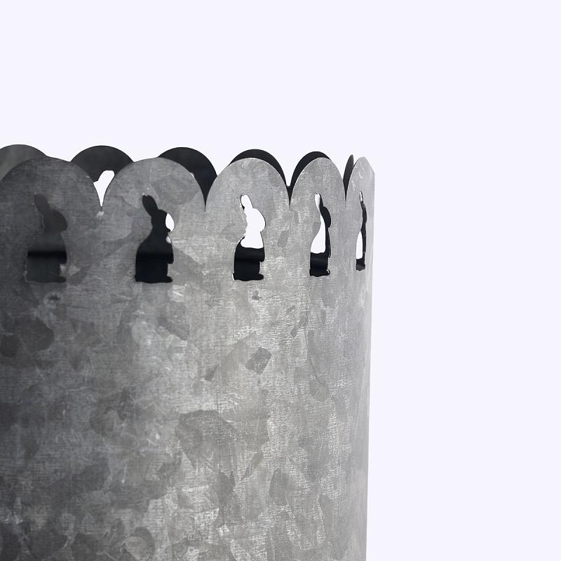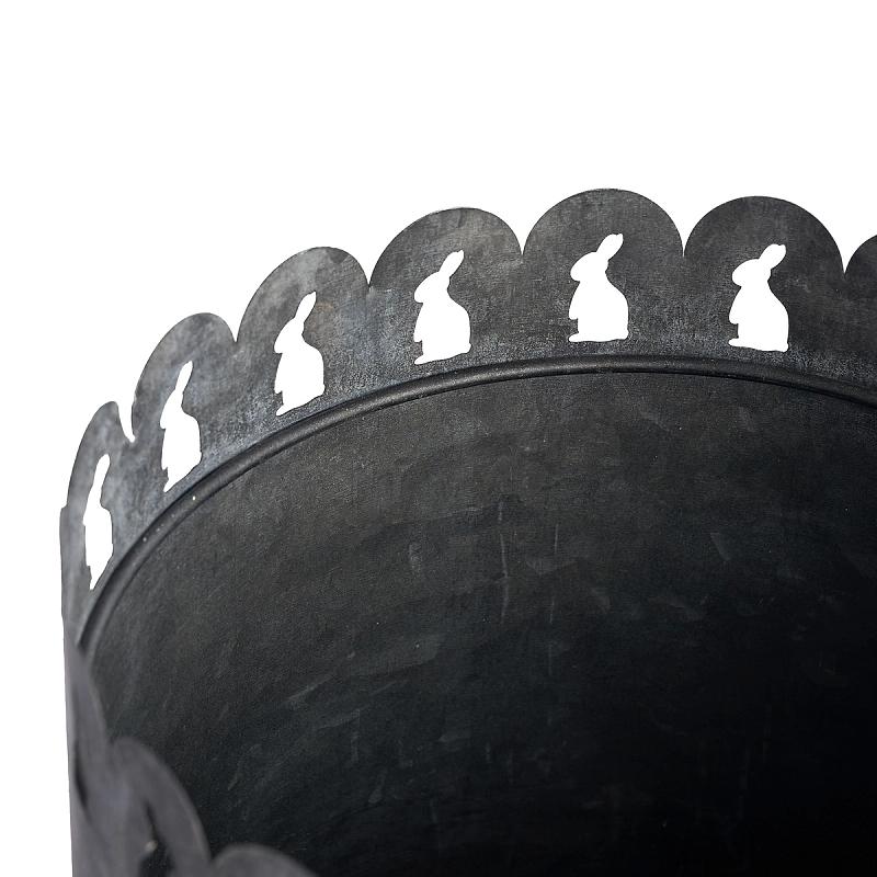 Crafted from zinc with a vintage aged finish, our Hoppity Planters brings rustic charm and whimsy to your seasonal décor. Featuring a beautifully stamped rabbit silhouette and a delicate scalloped lip, they make perfect Easter displays, spring centerpieces, or as a charming container for potted blooms. Available in three sizes.