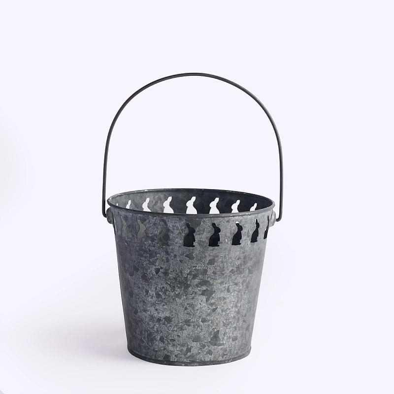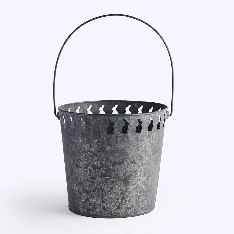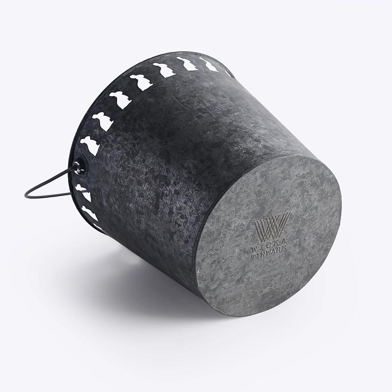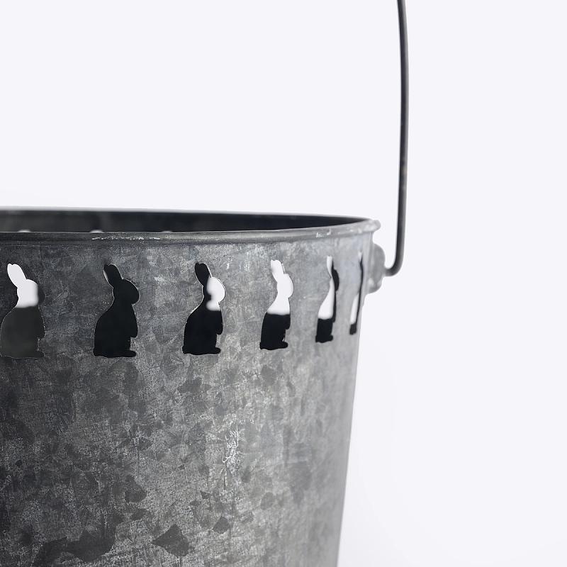 Crafted from zinc with a vintage aged finish, our Hoppity Pails bring rustic charm and whimsy to your seasonal décor. Each pail features a beautifully stamped rabbit silhouette, adding a playful yet elegant touch. Complete with a sturdy wire handle for easy hanging or carrying, these versatile pails are perfect for Easter displays, spring centrepieces, or as unique gift containers. Available in three sizes.