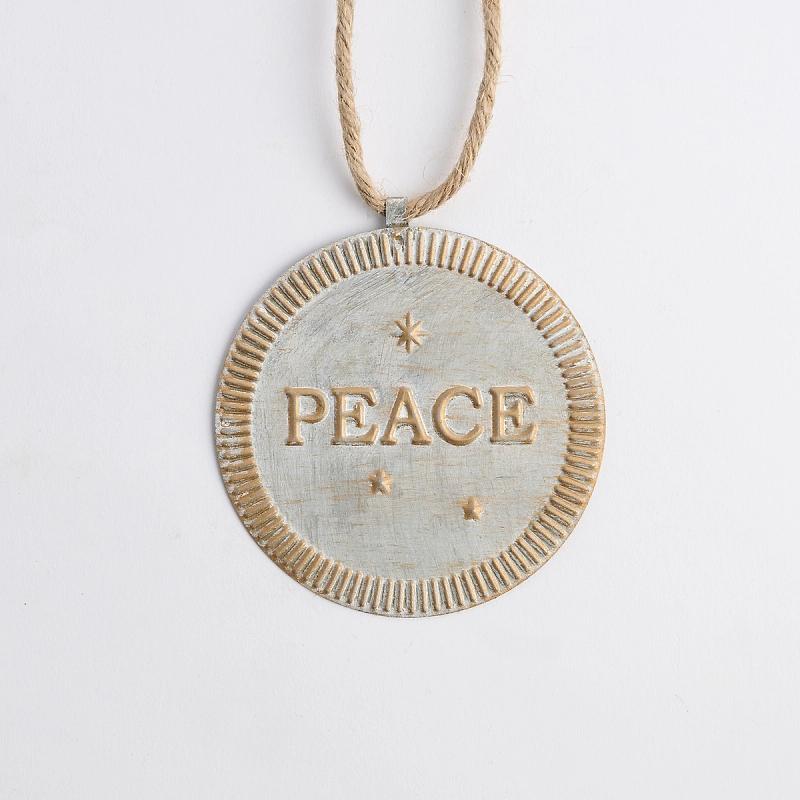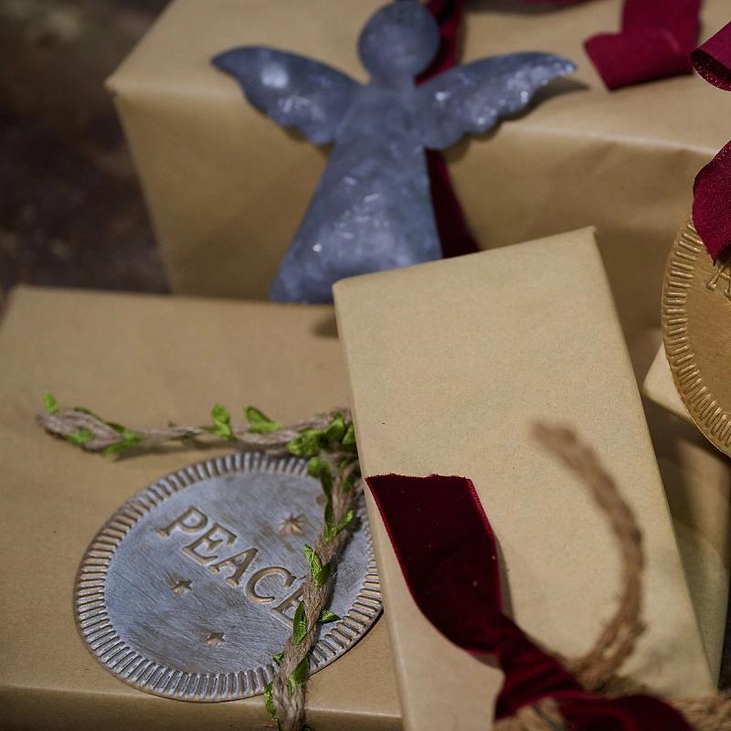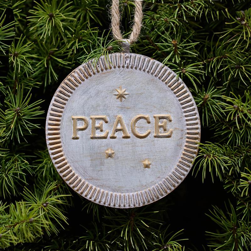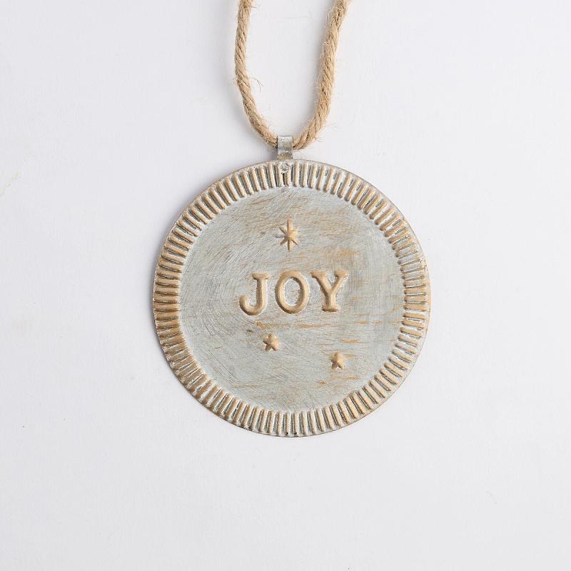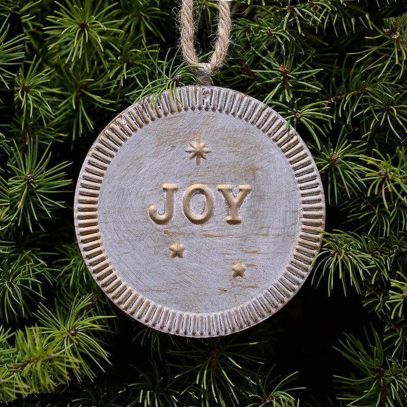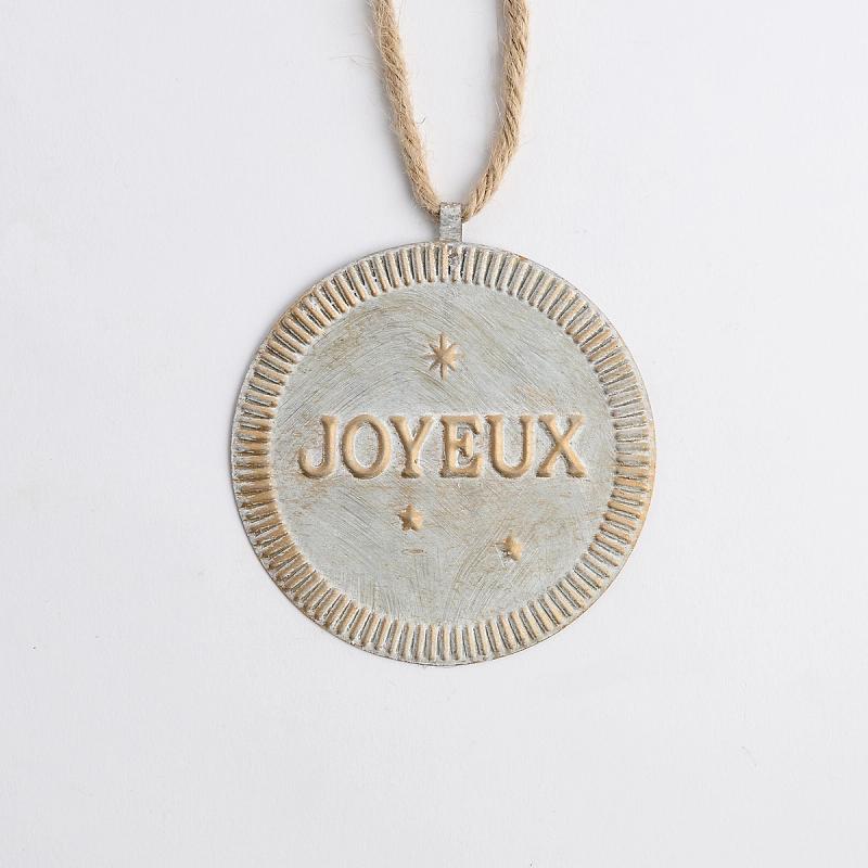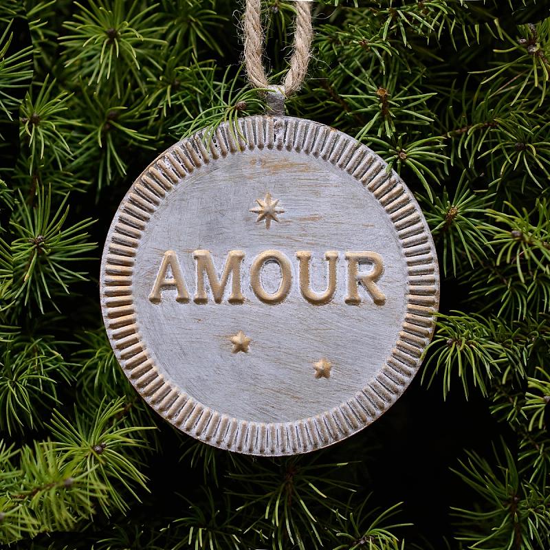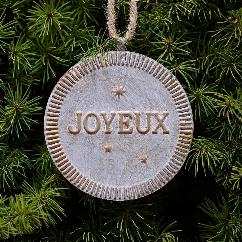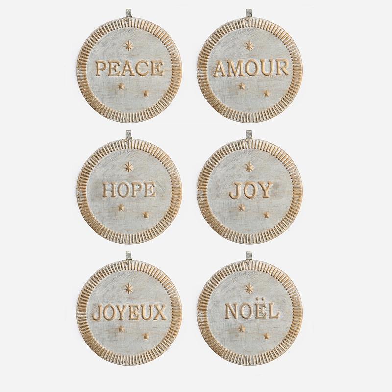 The Lafayette Discs feature six hand-pressed tin disks, each finished in a charming Verdigris patina that evokes the beauty of timeworn metal. Suspended with thick natural string, the disks display a mix of six French and English words, adding a warm, international flair to your holiday décor. Whether hung on a Christmas tree or used as a thoughtful finishing touch on gift wrapping, this unique set is inspired by a recent discovery at a Paris flea market—bringing an authentic touch of old-world elegance to your festive celebrations.