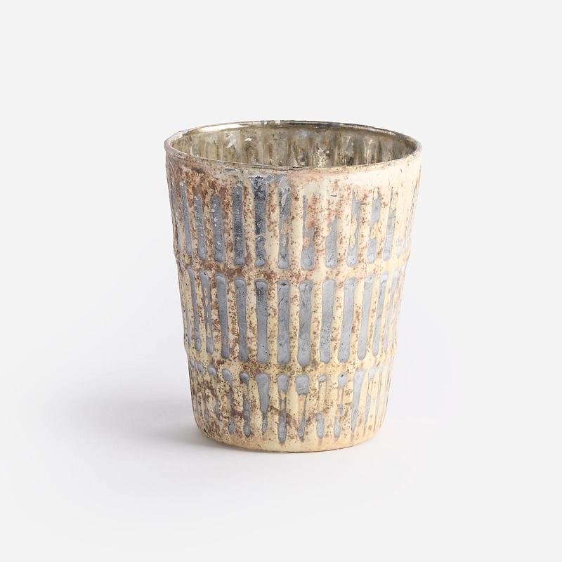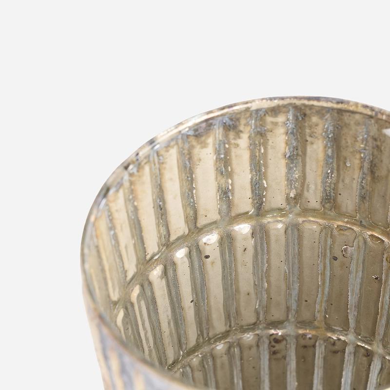 Bold and refined, the Schubert range features a handsome thatched gold relief, combining texture and elegance in a timeless design. Each votive is handcrafted using traditional mercury silvering techniques, resulting in a soft worn finish and authentic aged patina. Subtle variations make every piece unique, while the Schubert collection radiates a warm, inviting glow that enhances the ambience of any space. Combine with candle votives or flameless battery tea lights (not included). Available in three sizes.